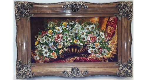 تابلو فرش گل ابریشم طرح گل عرضی بابونه کد22