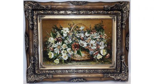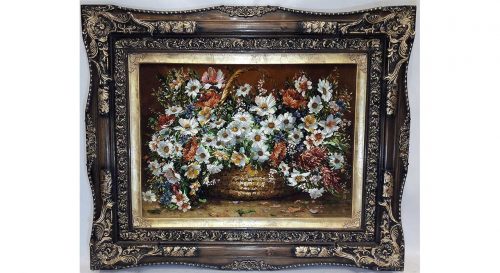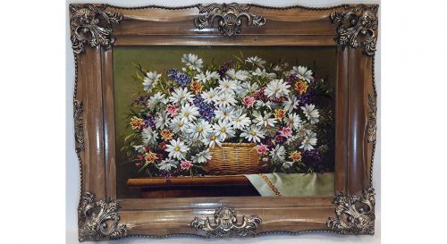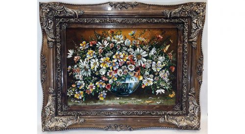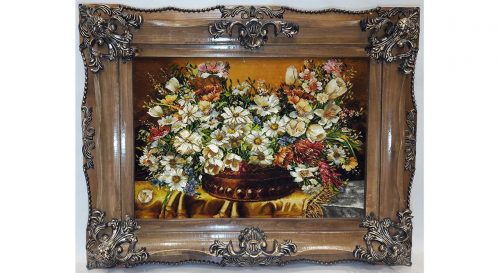 تابلو فرش گل ابریشم طرح گل عرضی بابونه کد21