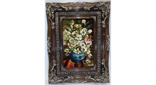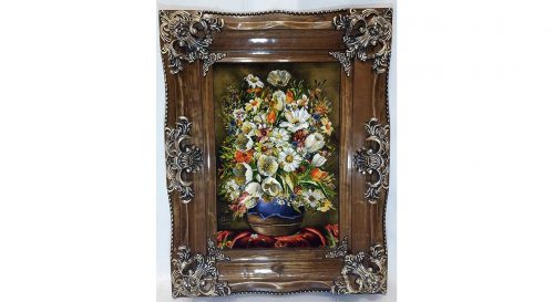 تابلو فرش گل ابریشم طرح مینیاتور طولی کد 89