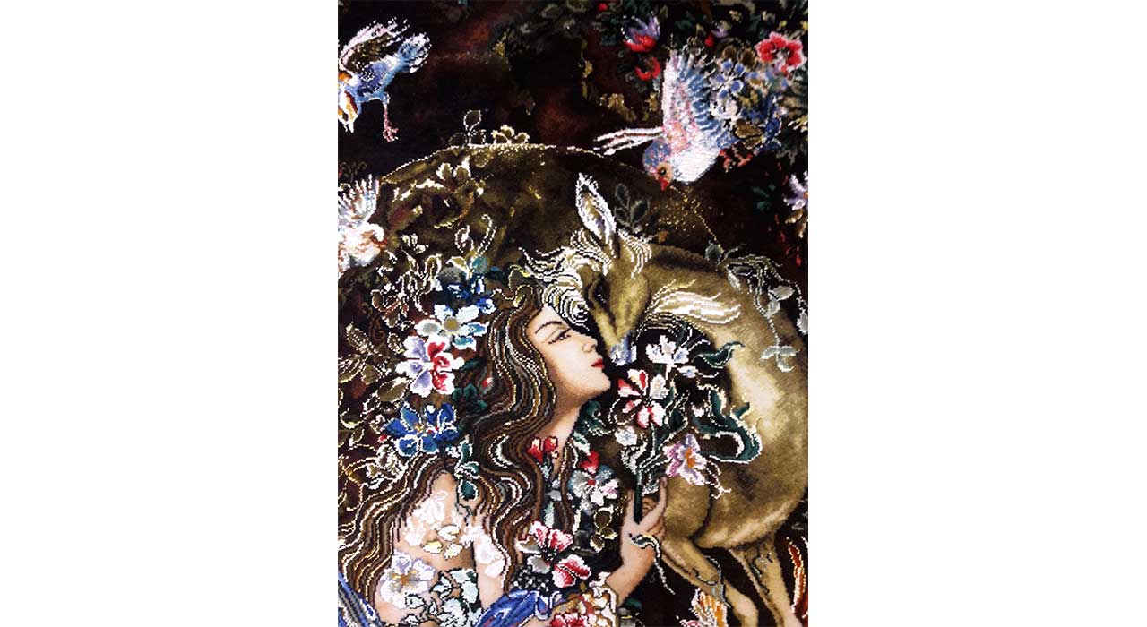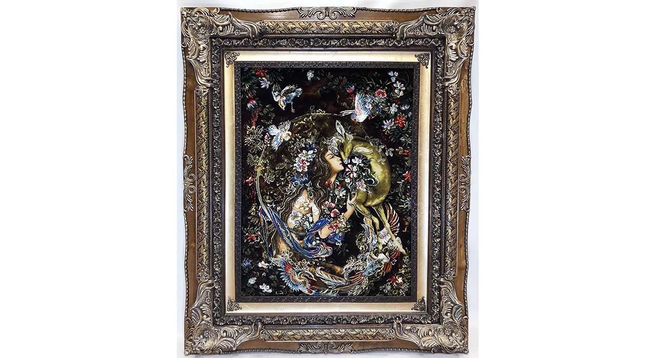 خانهتابلوفرش دستبافت تابلو فرش دستباف طرح مینیاتور نوازش اهو کد 105