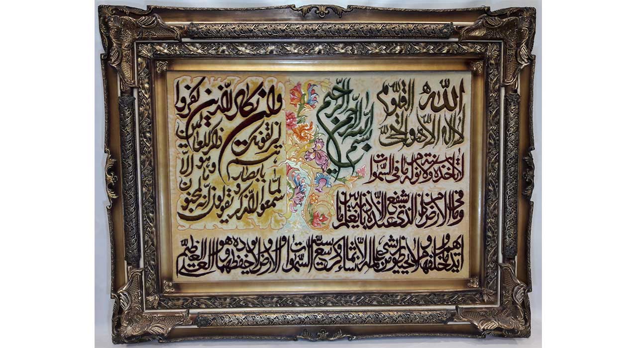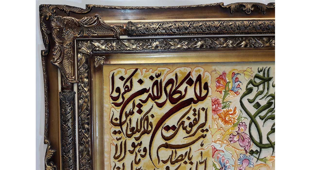 دسته: تابلوفرش دستبافت برچسب: تابلو فرش دستباف طرح آیات، طرح برجسته