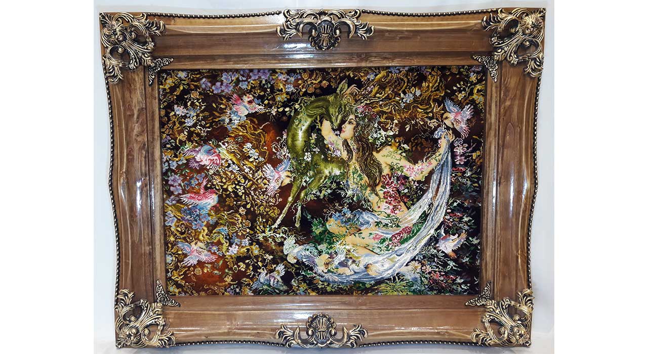 تابلو فرش گل ابریشم طرح مینیاتور عرضی کد 90