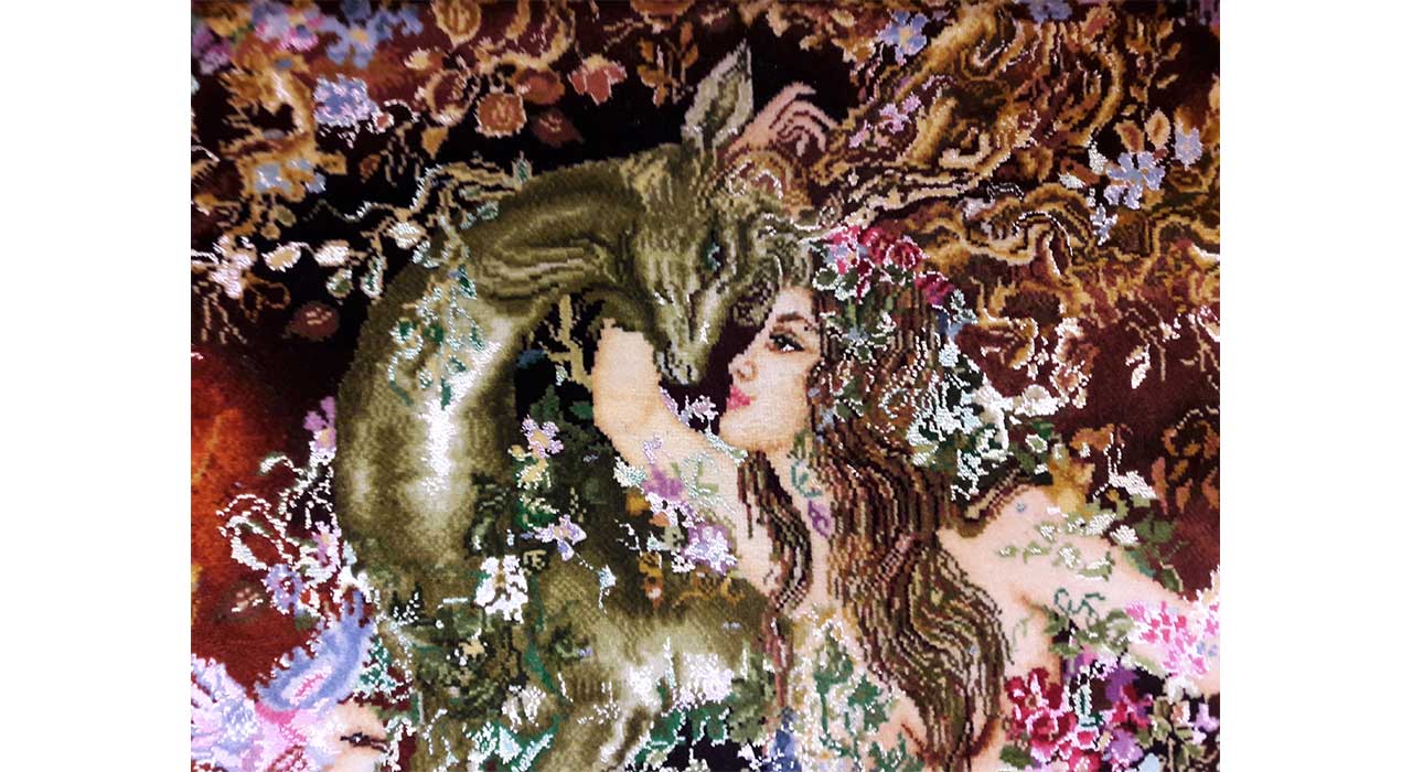 تابلو فرش گل ابریشم طرح چهره دختر کد 75