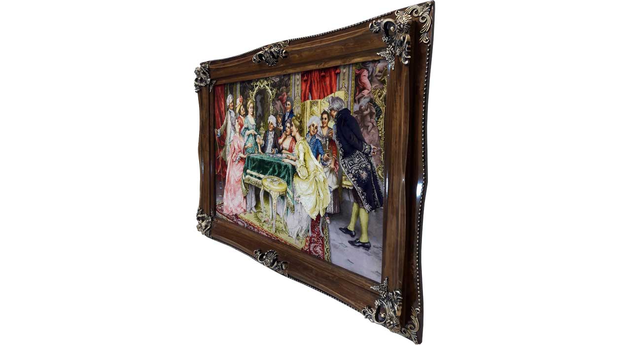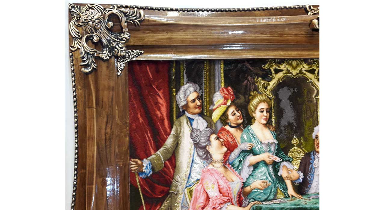 خانهتابلوفرش دستبافت تابلو فرش گل ابریشم طرح پاسورباز کد 73
