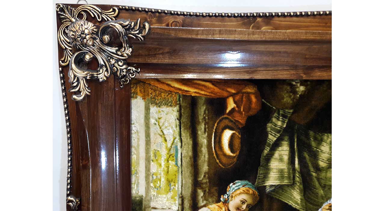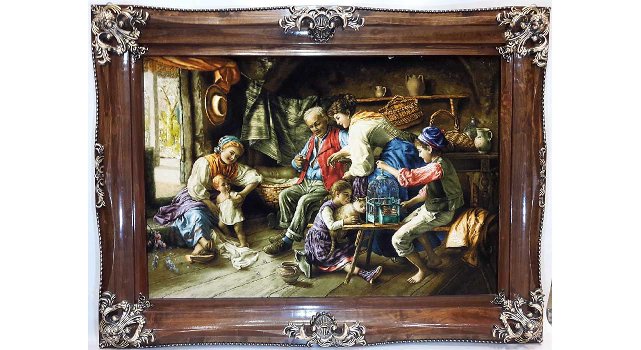 خانهتابلوفرش دستبافت تابلو فرش گل ابریشم طرح کانون گرم خانواده کد 13