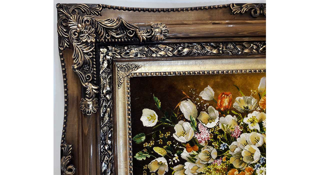 تابلو فرش گل ابریشم طرح مینیاتور طولی کد 89