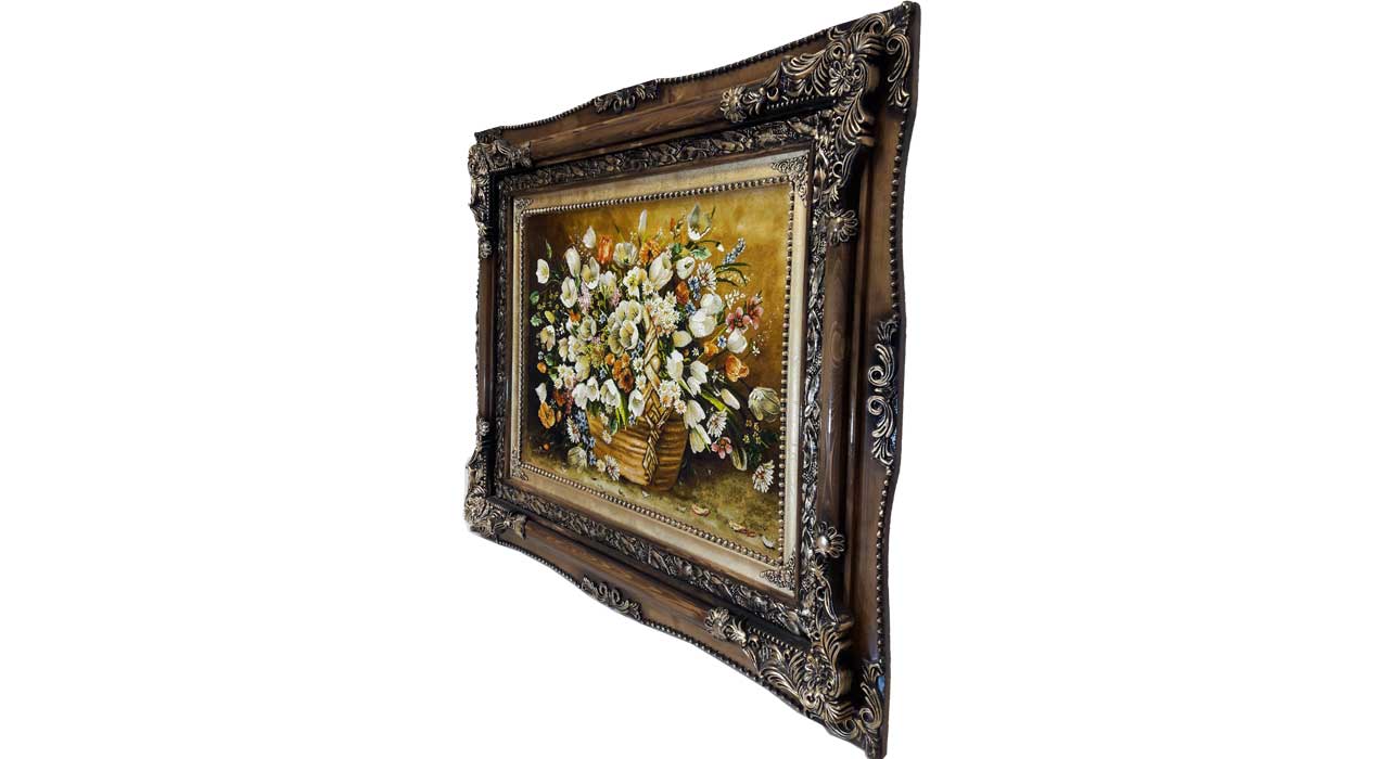 خانهتابلوفرش دستبافت تابلو فرش گل ابریشم طرح گل عرضی کد 96