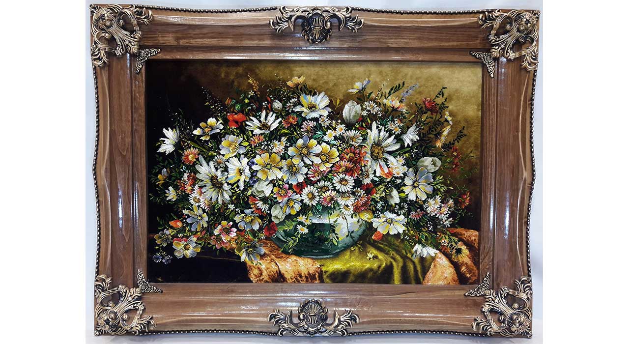 تابلو فرش گل ابریشم طرح گل عرضی کد 97
