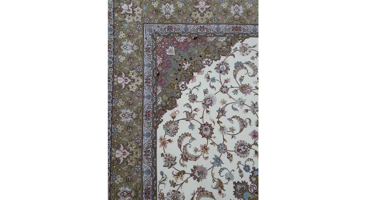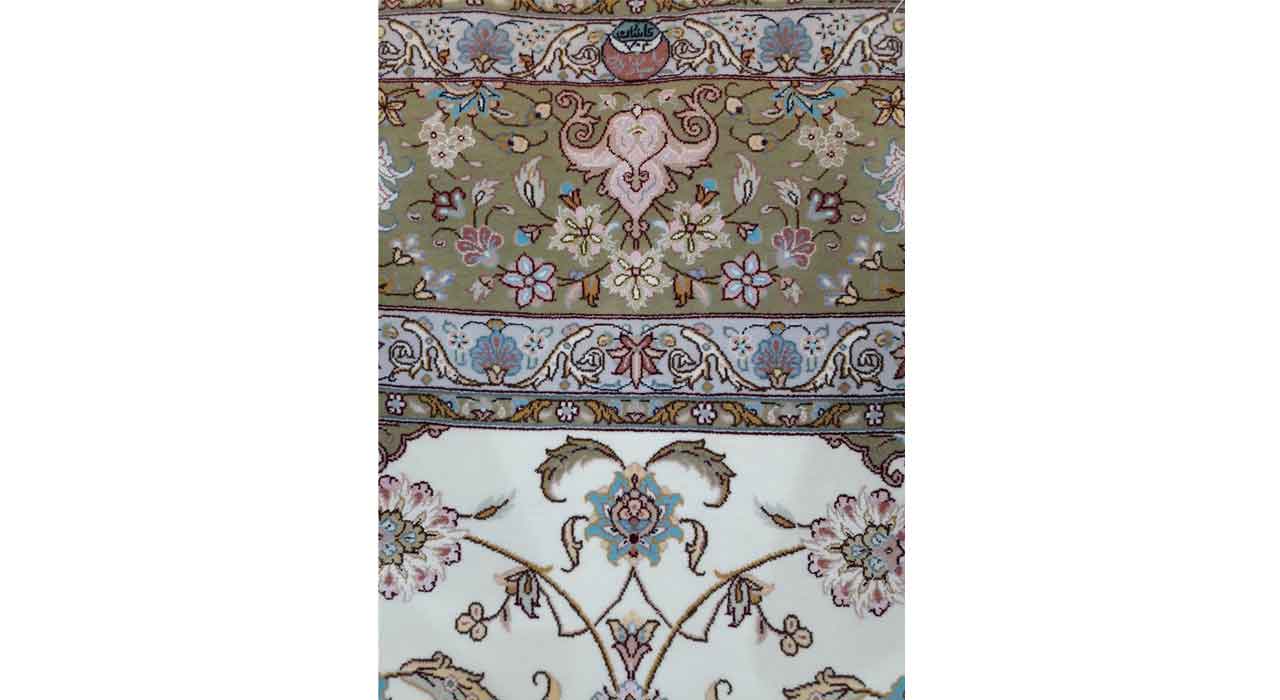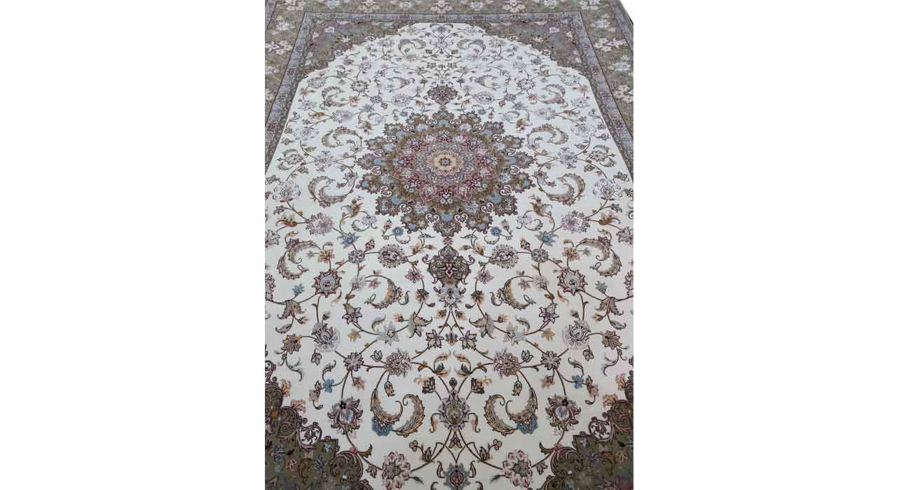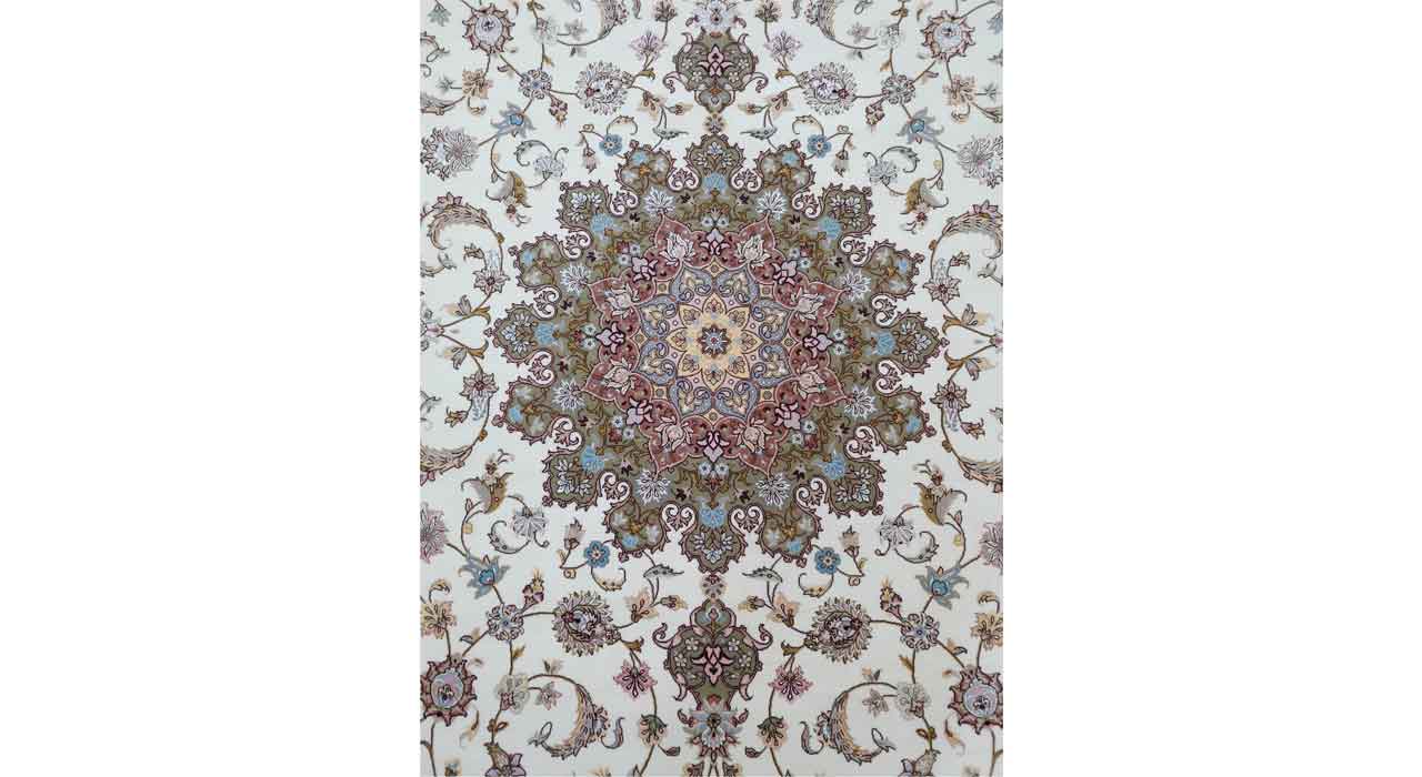 دسته: فرش دستباف, کرک و ابریشم برچسب: بین ۹۰-۸۰ خانه، فرش دستباف کرک و ابریشم، فرش دستباف کرم، نه متری