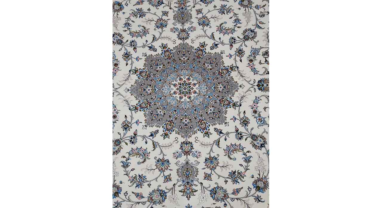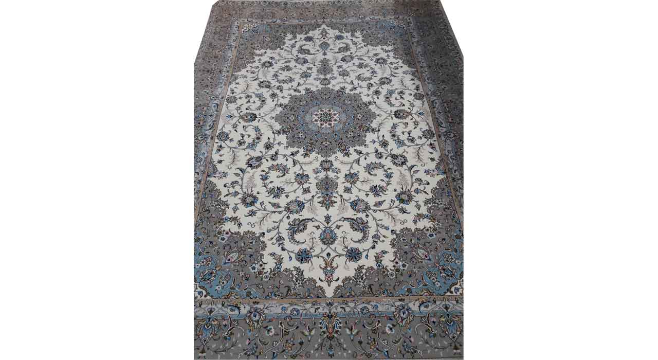 دسته: فرش دستباف, کرک و ابریشم برچسب: بین ۷۰-۶۰ خانه، فرش دستباف کرک و ابریشم، فرش دستباف کرم، نه متری