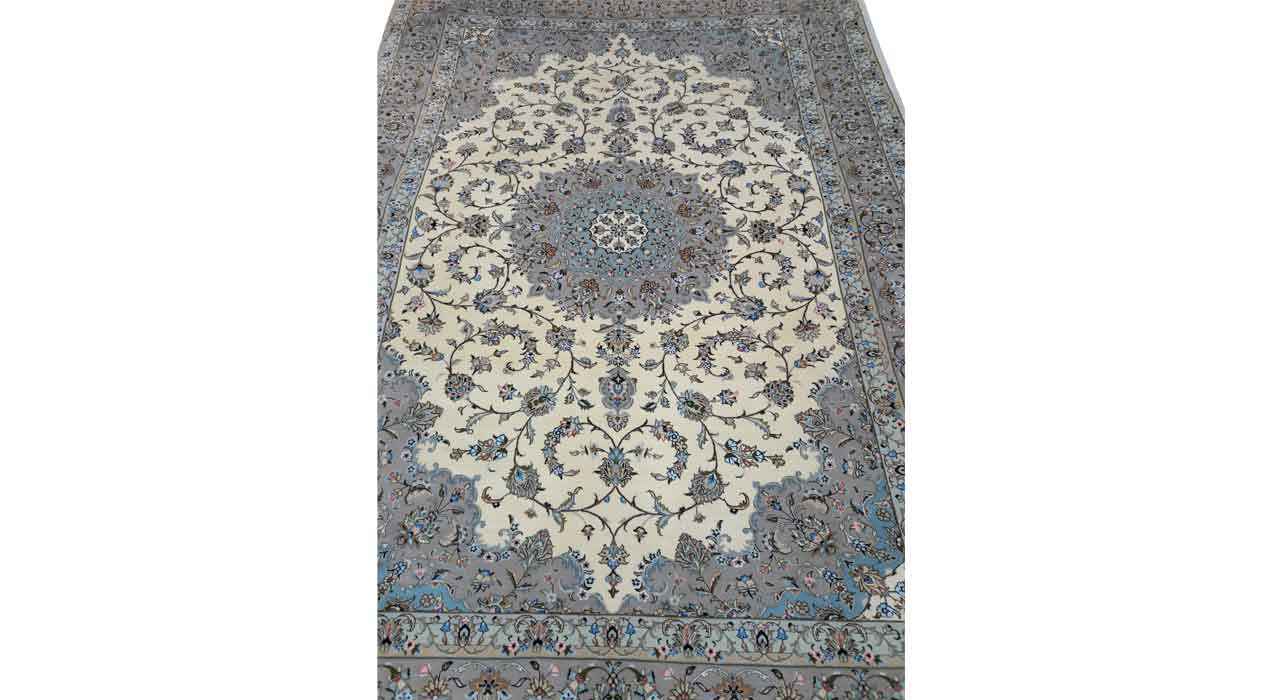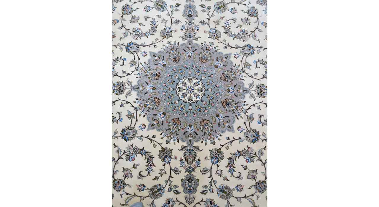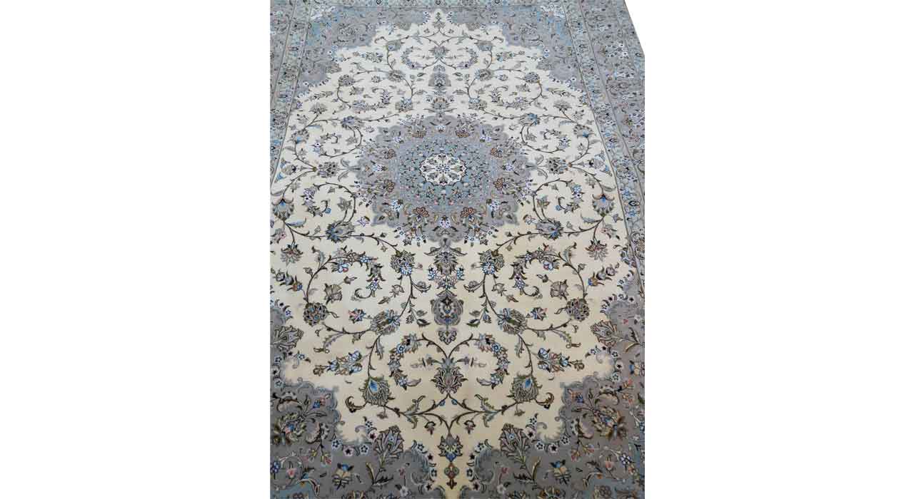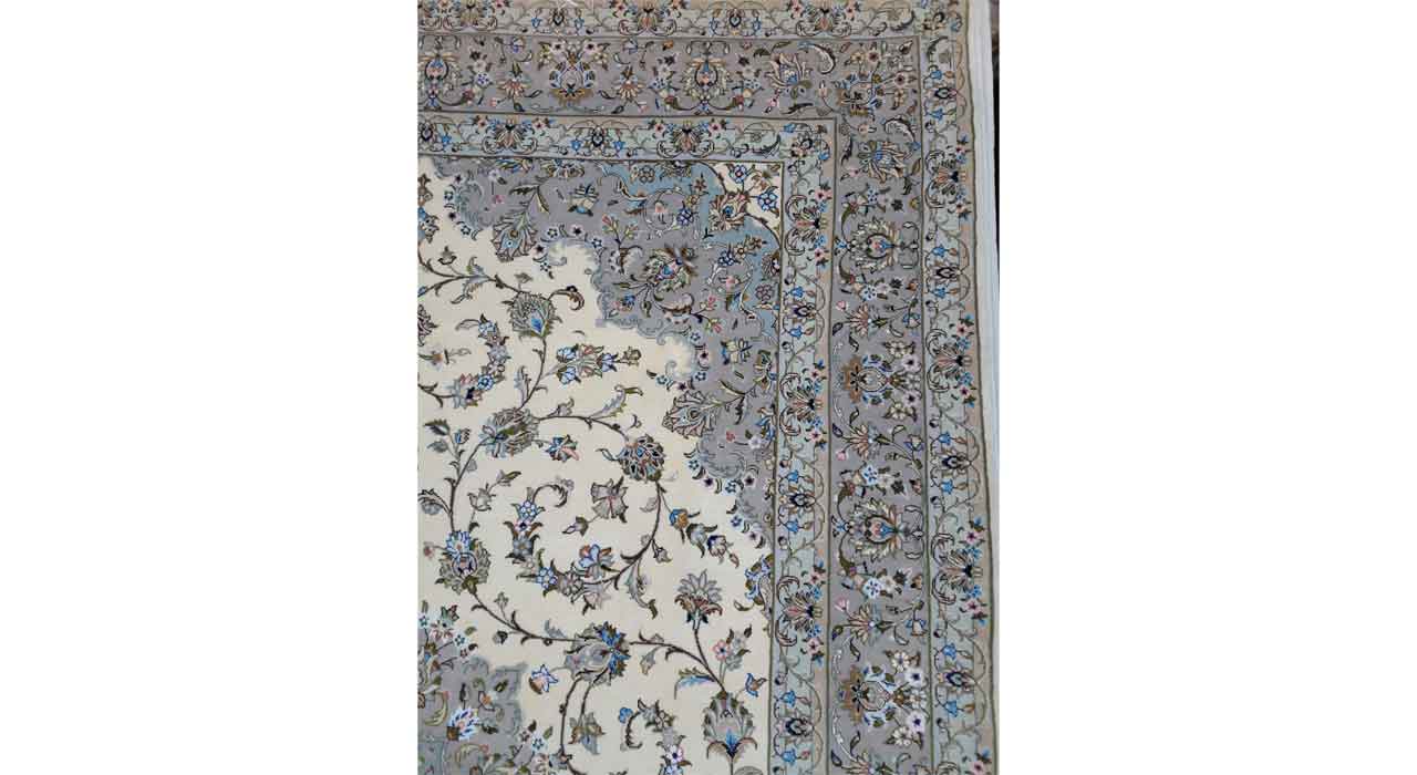 دسته: فرش دستباف, کرک و ابریشم برچسب: بین ۷۰-۶۰ خانه، فرش دستباف کرک و ابریشم، فرش دستباف کرم، نه متری