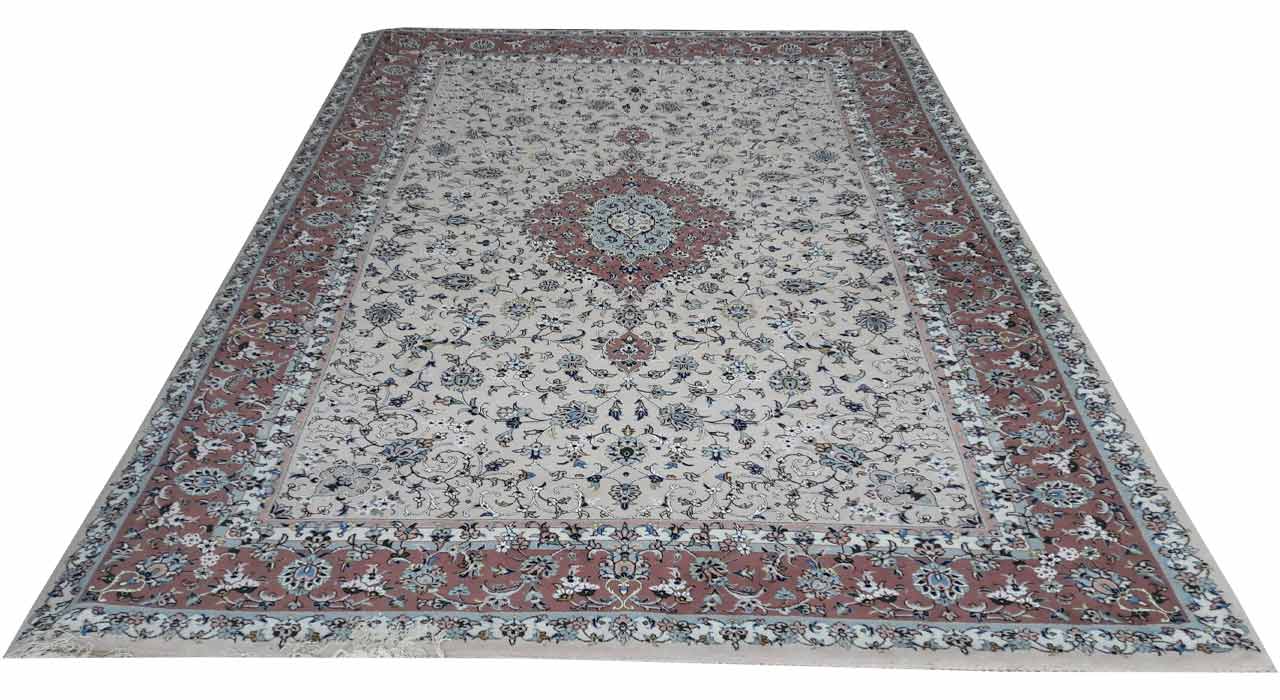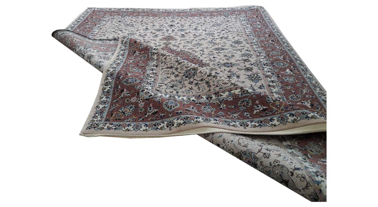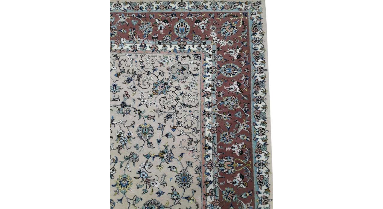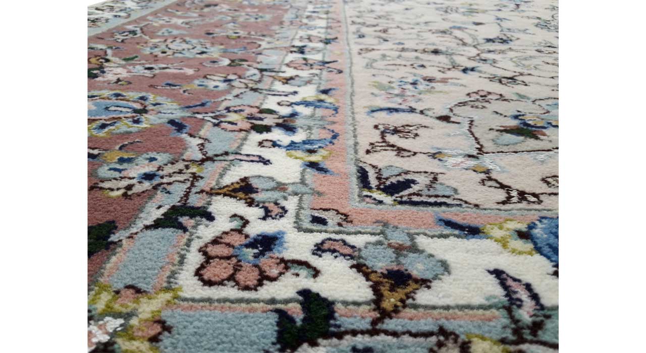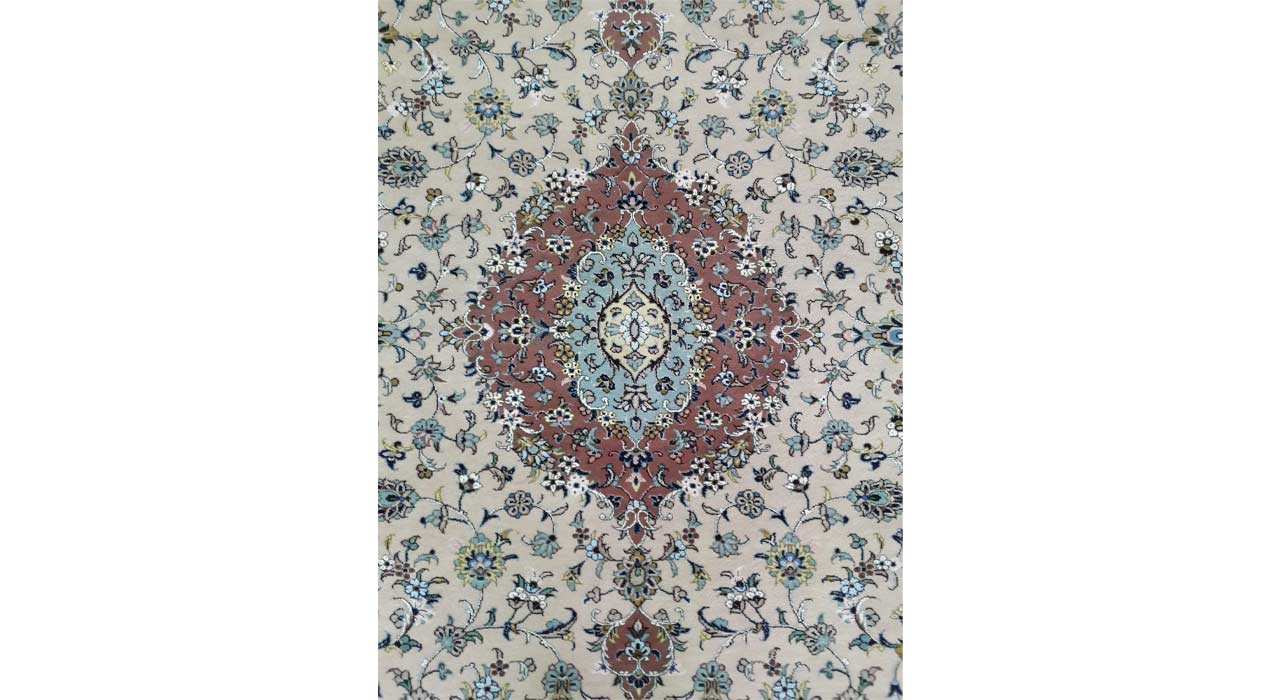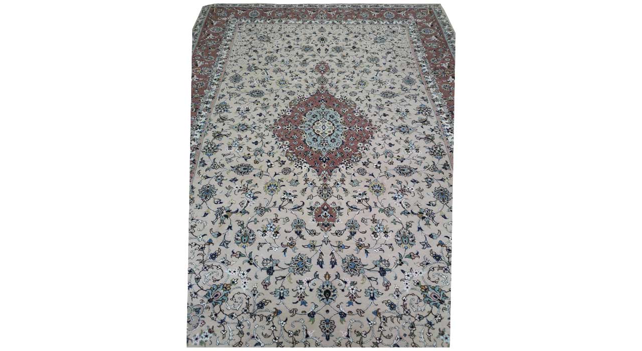 دسته: پشم و ابریشم, فرش دستباف برچسب: بین ۶۰-۵۰ خانه، فرش دستباف پشم و ابریشم، فرش دستباف کرم، نه متری